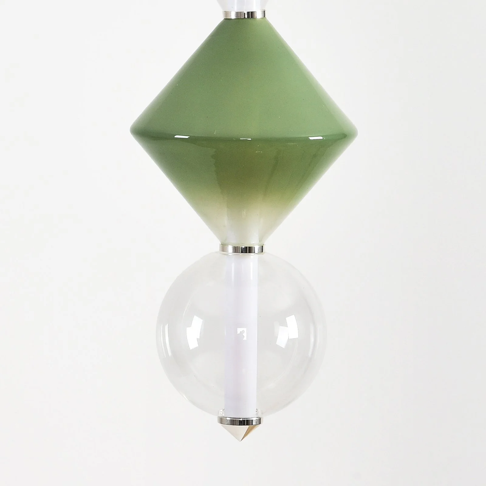 The Naij Natura Sculptural Grass Pendant brings a sleek, dimensional presence to any space, standing 27.5” high & 7.9” wide for a refined profile. A clear glass globe pairs with vessels in soft green & white ombre tones, creating a luminous play of color & transparency. Its modular design secures the bulb through chrome rings, allowing flexible configurations that adapt seamlessly to modern interiors.